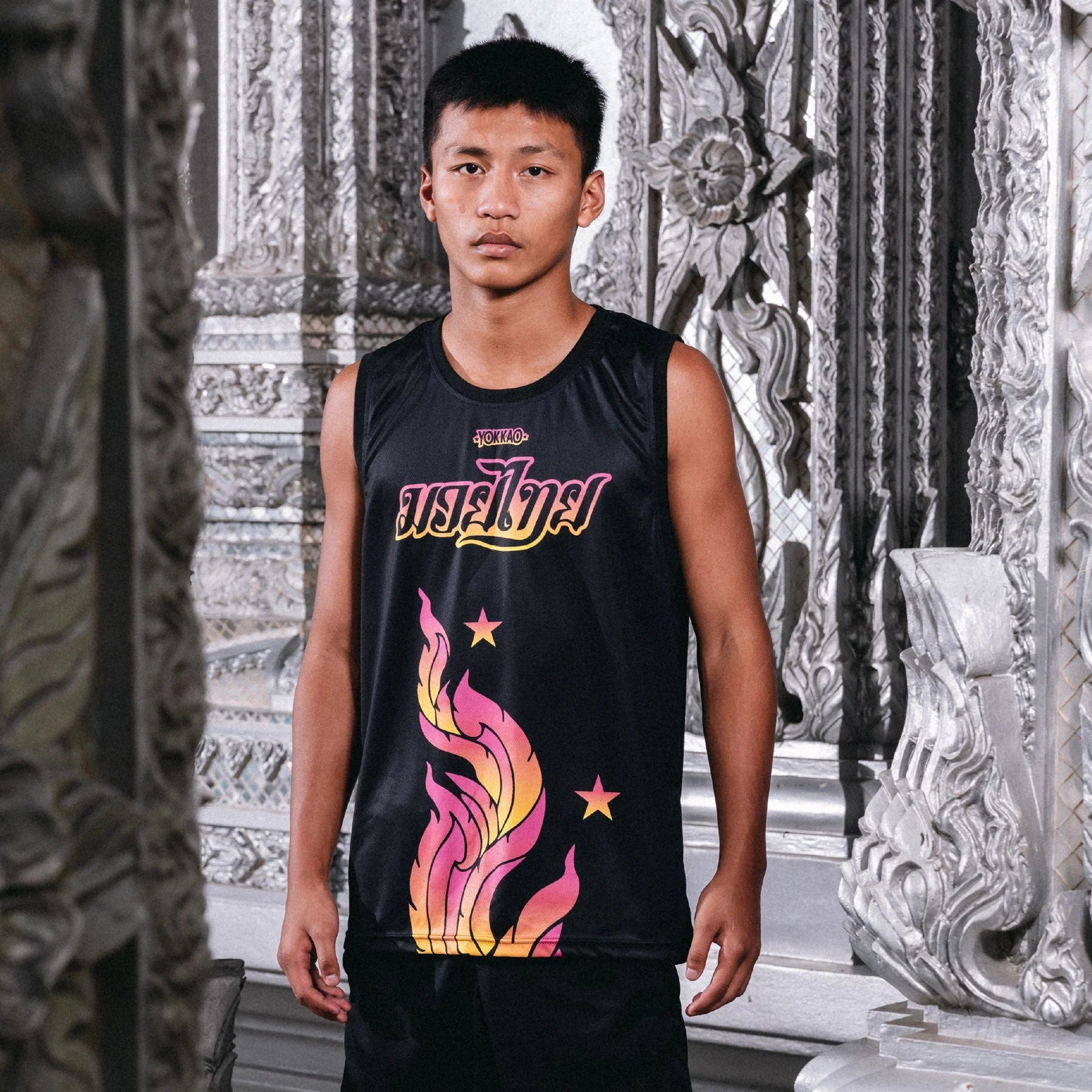 Turn heads and turn up your performance with The Flame Workout Tank by YOKKAO. Featuring the striking elegance of traditional Thai flame motifs, this tank channels heritage into high-impact style. Made from lightweight, breathable, and quick-drying matte polyester, it's built to keep up with the intensity of your training—whether you're hitting the gym, the pads, or the streets. Designed for durability, comfort, and bold aesthetics, this tank top is made to inspire every move and outlast every session. All sizes are based on North American sizing specifications. FEATURES