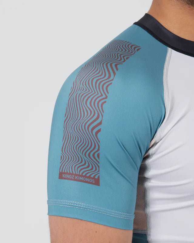 The Kingz Flow Rashguard combines lightweight performance with a clean, modern aesthetic, making it a go-to no-gi BJJ rashguard. Crafted from a flexible polyester/spandex blend, it offers a smooth, second-skin fit for unrestricted movement during rolls and drills. Its fully sublimated graphics ensure vibrant color retention and long-term durability